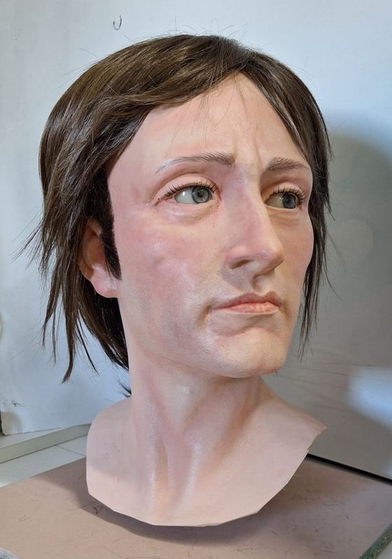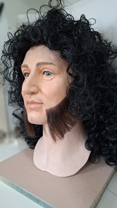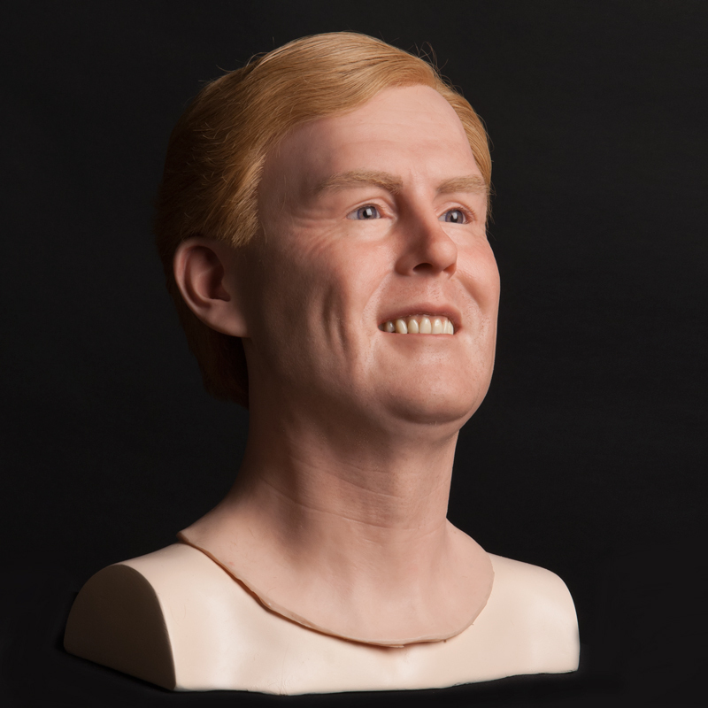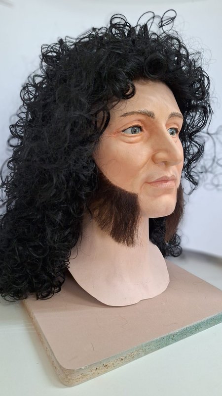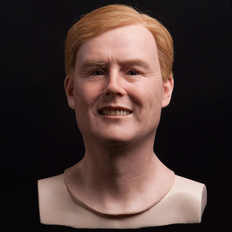 - Production of 1 silicone head based on photo’s, incl. sculpting, mold making, lifelike painting, prosthetic eyes and implanted hair: €5000