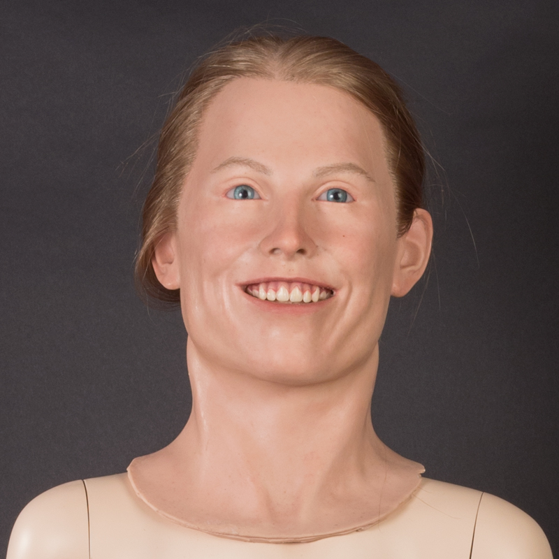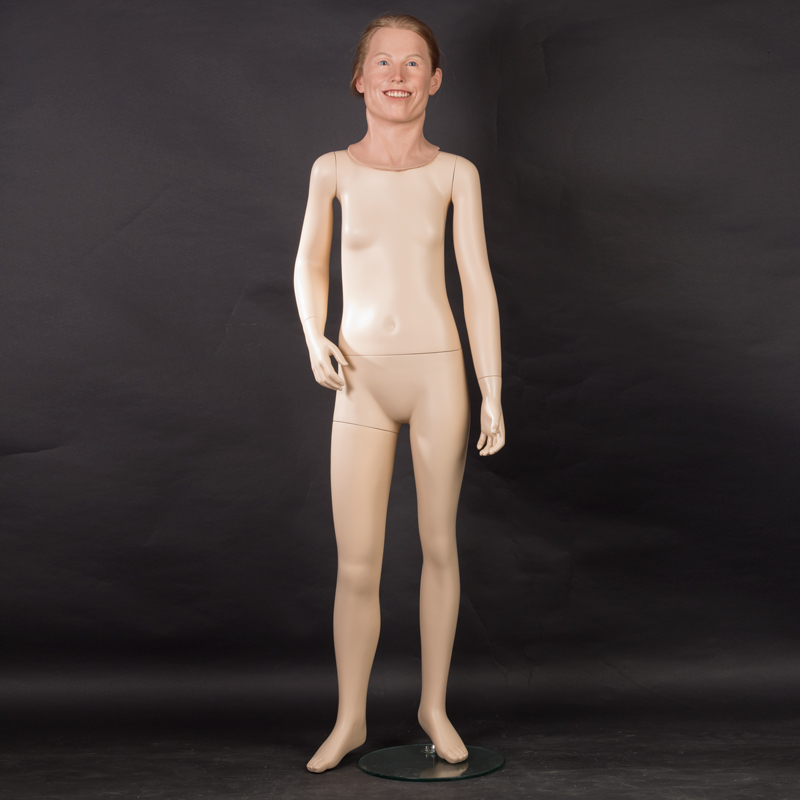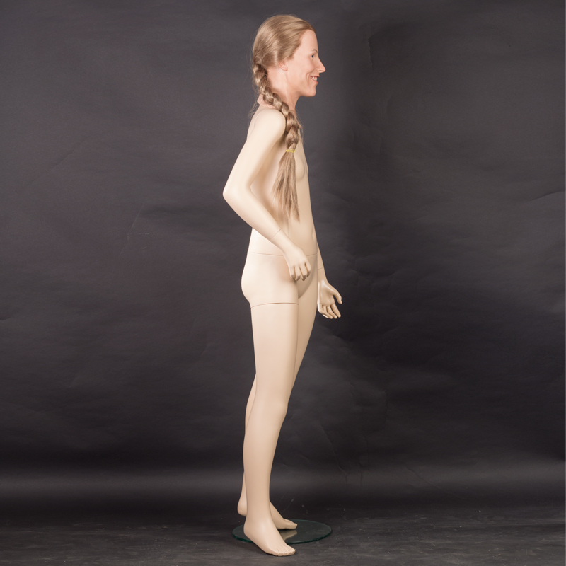 Dit polyester lichaam met siliconen hoofd kan gebruikt worden om een tienermeisje uit te beelden. Het haar kan geknipt en gestyled worden.